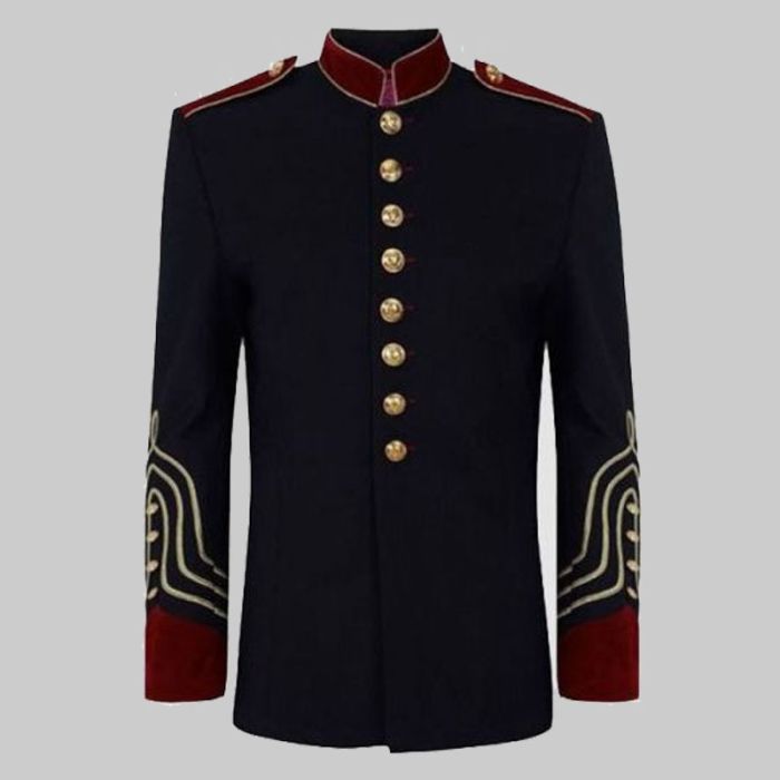 Men black military Coat with gold buttons and bands Previous