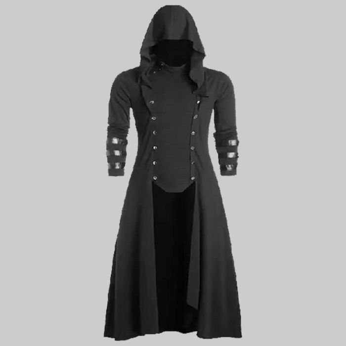 Mens Coat Long Jacket Gothic Steampunk Cloak Hooded Trench Medieval Vampirewizard Cosplay Costume Halloween Adult Women Men