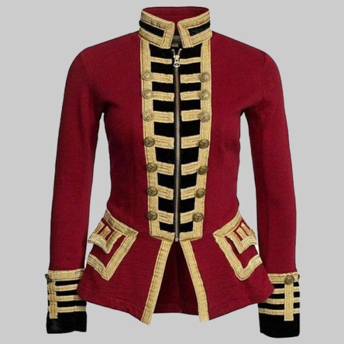New Womens Red Wool French Terry Officers Military Band Jacket